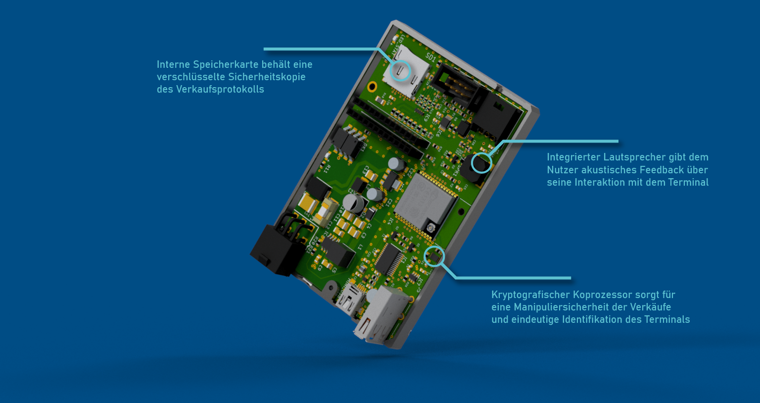 Vom Terminal aus werden sämtliche Verkaufsvorgänge geschützt vor Manipulationen auf der microSD-Karte gespeichert - dies sorgt für künftige Datenerfassungsrichtlinien vor.